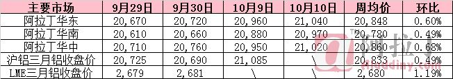 综合来看,双节长假之后仅两个正式交易日,国内铝价呈现“一鼓作气,再而衰”的状态,根本原因是多资产联动上涨的情绪刺激推升铝价突破,但基本面的供需表现难以为铝价连续拉升提供充足动力。因此,从下周开始,市场正式恢复之后,铝价将在稳中向好的市场氛围中高位震荡,能否继续上探则需要继续考验中下游的消化、传导能力。