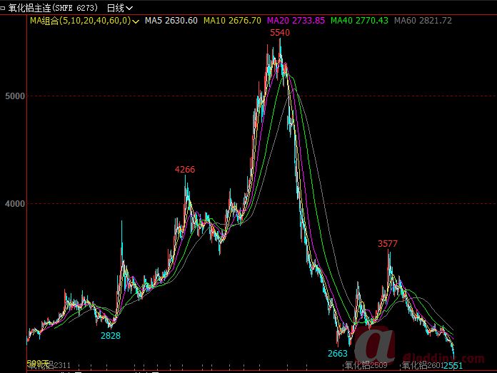 图2 上期所氧化铝主力合约收盘价格走势