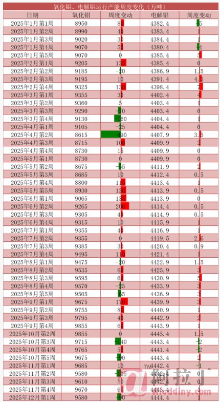 表2 氧化铝、电解铝周度运行产能变化