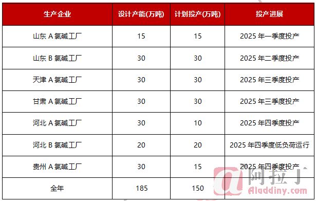 此外,据阿拉丁(ALD)调研,印尼格林美、华友钴业及中伟印尼镍钴项目等均出现小部分用氧化镁代替烧碱生产的现象。不过,由于镍钴行业对氧化镁产品质量要求高,且氧化镁年产出有限,只有当烧碱价格明显高于氧化镁时,才会考虑用氧化镁替代。尽管2025年印尼400万吨氧化铝项目投产,按照印尼铝土矿用碱单耗计算,年用碱量仅增加40万吨左右,且泰国Vinny Thai 2025年投产了22万吨烧碱项目,产品也销往周边国家。