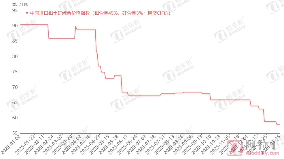 山东32%液碱价格从2月份最高日均价985元/吨跌至12月底的717.5元/吨,累计下跌267.5元/吨。随着进口矿石价格下行,下半年进口矿价格优势逐渐显现,且考虑到下半年国产矿资源紧张,国内氧化铝工厂由原来的上半年国产矿使用比重增加,转为下半年进口矿使用比重提升。据阿拉丁(ALD)调研,国内氧化铝行业进口矿消耗量比例从2025年1月的72.51%提升至12月底的75.24%,提升了2.73个百分点。如信发、兴安化工、希望、开曼等企业,因进口矿结构及比例变化,导致用碱量阶段性减少,不过也有部分氯碱工厂全年用碱量变化不大。